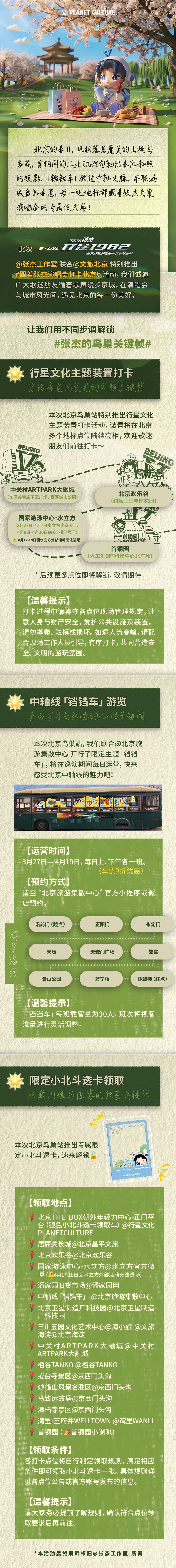 跟着演唱会去旅行,这个春天与张杰相约北京。愿这段旅程,有音乐的炽热也有停泊的温暖,祝每一位奔赴现场的你,留下难忘的春天回忆。